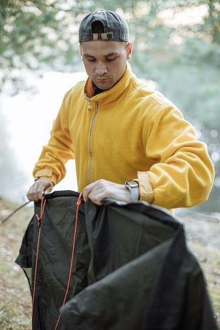 For minor tears, use a patch kit or fabric repair tape. Apply a seam sealer to reinforce stitches and prevent leaks. Clean the area thoroughly before repairs to ensure proper adhesion. For larger damage, professional repair services may be needed. Regular inspections can help catch issues early. Always follow the manufacturer’s guidelines for repairs to maintain the tent’s integrity and warranty; Proper maintenance ensures the tent remains waterproof and durable for years of use.
